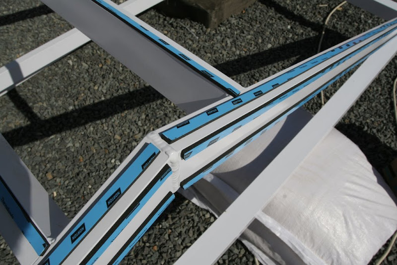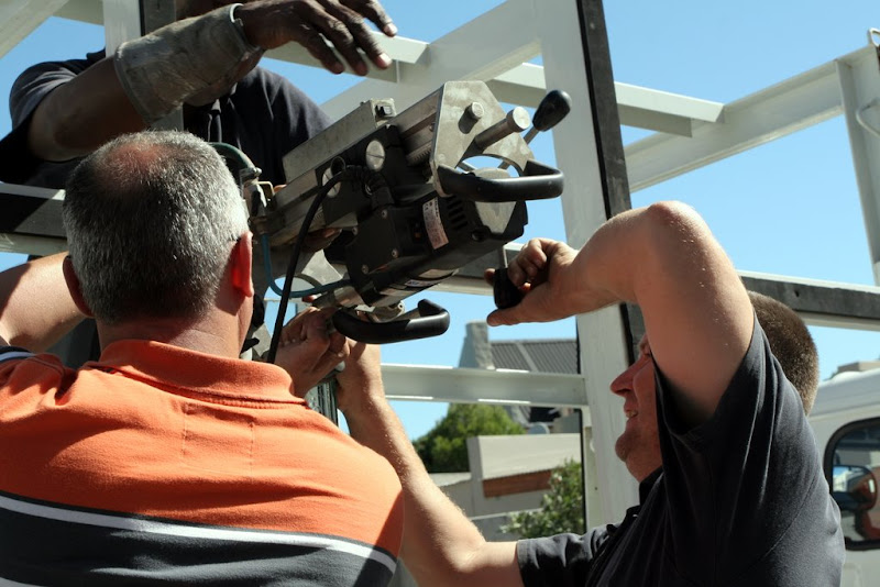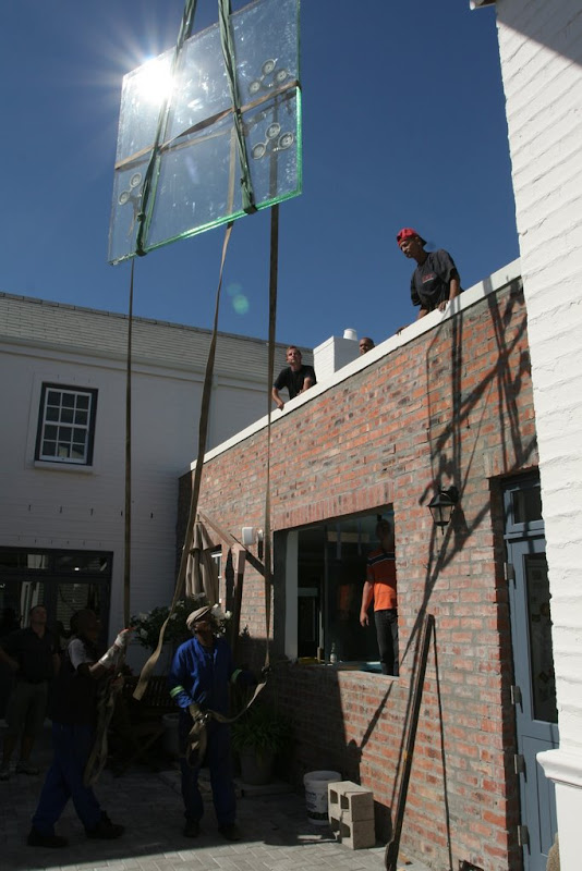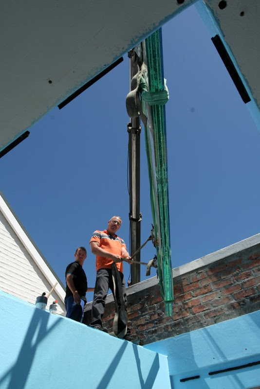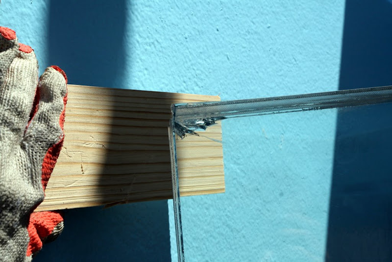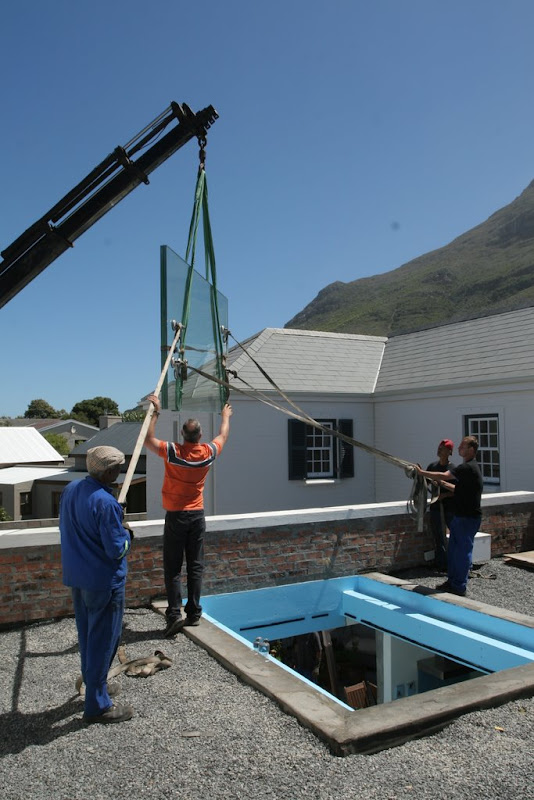 ![]() Lowering it in: ![]() Manoeuvring it into position: ![]() Oops. The glass struck the side of the tank going in. That little crack is destined to become a big crack. ![]() A little superheroism from the glass guys, making sure the crack doesn't run all the way across the pane: ![]() Here was the result: ![]() And finally, success. Nearly two tonnes of glass in position: ![]() Mmm, that's a lot of glass: ![]() I pushed in around 100 tubes of silicone with a pneumatic caulking gun (Dow Corning 895): ![]() My skylight arrives: